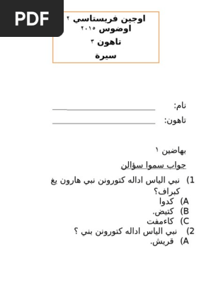 Berikut adalah skema jawapan peperiksaan akhir tahun kafa 2016. Tugasan 9 nama guru : Berikut adalah skema jawapan peperiksaan akhir tahun kafa 2016. 1) rasulullah s.a.w semasa kecil bekerja sebagai ___ a) tentera abrahah menyerang dengan menaiki gajah b) enam tahun c) saubiatul aslamiah dan halimatun saadiah d) mengembala kambing 2) apakah peristiwa yang berlaku sebelum kelahiran rasulullah s.a.w a) enam tahun b) bani saad c) tentera abrahah. جواڤن تيندق بالس راج دالم هوبوڠن ديڤلوماتيک اونتوق مملوق إسلام sirah tahun 3 kafa kuiz sirah tahun 2 kafa jakim solat musafir kafa tahun 4.